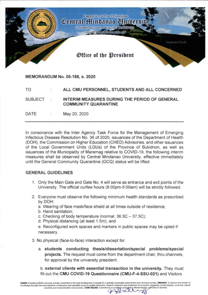 ANNOUNCEMENT: INTERIM MEASURES DURING THE PERIOD OF GENERAL COMMUNITY QUARANTINE (CMU-OP Memo No. 05-188, s. 200) Share tweet