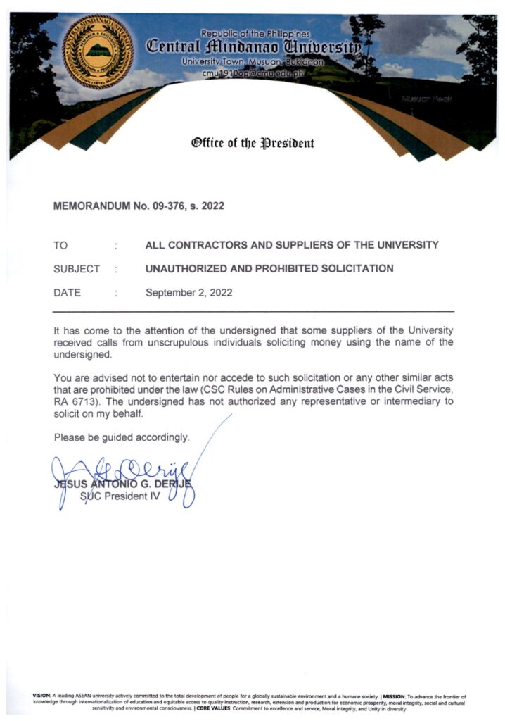 ANNOUNCEMENT: UNAUTHORIZED AND PROHIBITED SOLICITATION TO ALL CONTRACTORS AND SUPPLIERS OF THE UNIVERSITY Share tweet