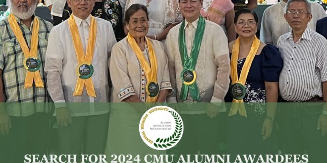 Read More »[LOOK] Search for 2024 CMU Alumni Awardees!Categories: Golden Jubilarians (Class of 1974) Silver Jubilarians (Class of 1999) Open Category๐ Nominate now! Scan the QR code or visit https://alumni.cmu.edu.ph/For more details, you may contactCMU Alumni Association, Inc. (CMUAAI)/Office of Alumni Relations & Linkages (OARL):Email: cmuaai@cmu.edu.phVisit: CMU Alumni Facebook PageCall or Text: 0906 049 3212Information and pubmat from CMUAAI & OARL