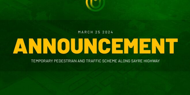 Read More »[๐๐ก๐ก๐ข๐จ๐ก๐๐๐ ๐๐ก๐ง] ๐ง๐ฒ๐บ๐ฝ๐ผ๐ฟ๐ฎ๐ฟ๐ ๐ฃ๐ฒ๐ฑ๐ฒ๐๐๐ฟ๐ถ๐ฎ๐ป ๐ฎ๐ป๐ฑ ๐ง๐ฟ๐ฎ๐ณ๐ณ๐ถ๐ฐ ๐ฆ๐ฐ๐ต๐ฒ๐บ๐ฒ ๐ฎ๐น๐ผ๐ป๐ด ๐ฆ๐ฎ๐๐ฟ๐ฒ ๐๐ถ๐ด๐ต๐๐ฎ๐ Due to the ongoing construction of the Pedestrian Overpass along the Sayre Highway between Gate 4 and Main Gate, heavy traffic congestion has been observed during rush hours from Monday to Friday. This situation poses significant hazards to pedestrians, including students, faculty, staff, and motorists. To address this concern and ensure …