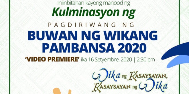 Comments Off on ANNOUNCEMENT: Ang Kolehiyo ng Edukasyon, sa Pangunguna ng Departamento ng Edukasyong Pangwika ay iniimbitahan kayong manood ng Kulminasyon ng Pagdiriwang ng Buwan ng Wikang Pambansa 2020 (Video Premiere) ngayong alas 2:30 ng hapon, ika 16 ng Setyembre, 2020.