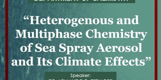 Read More »Natural Products Research and Development Center (NPRDC) in coordination with the Department of Chemistry 𝗦𝗲𝗺𝗶𝗻𝗮𝗿 𝗦𝗲𝗿𝗶𝗲𝘀 𝟮: 𝗛𝗲𝘁𝗲𝗿𝗼𝗴𝗲𝗻𝗼𝘂𝘀 𝗮𝗻𝗱 𝗠𝘂𝗹𝘁𝗶𝗽𝗵𝗮𝘀𝗲 𝗖𝗵𝗲𝗺𝗶𝘀𝘁𝗿𝘆 𝗼𝗳 𝗦𝗲𝗮 𝗦𝗽𝗿𝗮𝘆 𝗔𝗲𝗿𝗼𝘀𝗼𝗹 𝗮𝗻𝗱 𝗜𝘁𝘀 𝗖𝗹𝗶𝗺𝗮𝘁𝗲 𝗘𝗳𝗳𝗲𝗰𝘁𝘀. April 28, 2021 | 1:00pm via Video Conference