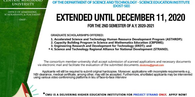 Read More »Extension of DOST-SEI application for Local Graduate Scholarship Program