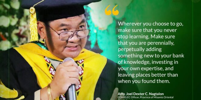 Read More »[ADDITIONAL PHOTOS] 70th Commencement Exercises with the theme “Global Citizenship through Lifelong Learning”๐๐๐๐. ๐๐ผ๐ฒ๐น ๐๐ฒ๐ ๐๐ฒ๐ฟ ๐. ๐ก๐ฎ๐ด๐๐ฎ๐น๐ผ๐ปCOMELEC Officer, Province of Misamis Oriental๐๐ถ๐ฆ๐ด๐ต ๐๐ฑ๐ฆ๐ข๐ฌ๐ฆ๐ณBatch 2College of AgricultureCollege of Forestry & Environmental ScienceCollege of Human Ecology #cmucommencementexercises #commencementexercises2024 #70thcommencementexercises #cmuclassof2024