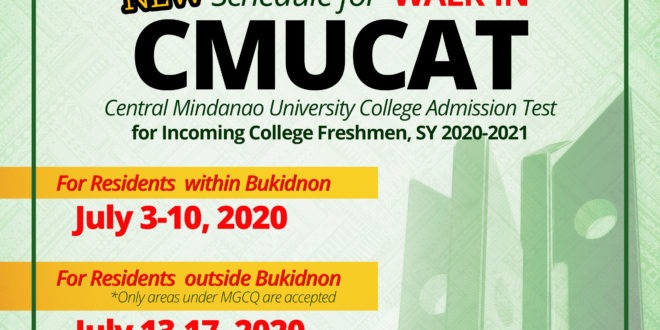 Read More »ANNOUNCEMENT: Schedule for WALK-IN CMUCAT for Incoming College Freshmen, SY 2020-2021: