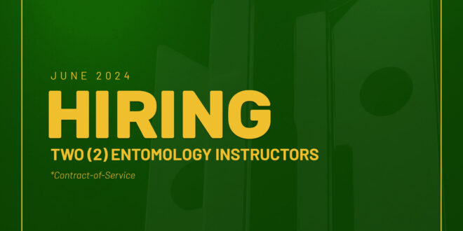 [HIRING] The Department of Entomology needs two (2) contract-of-service Entomology Instructors for the 1st Semester, AY 2024-2025. Qualifications: Having an MS/PhD degree or MS/PhD units in Entomology or its related field is an advantage With PRC – Agriculturist License With relevant training and skills Requirements: Application Letter Transcript of Records Personal Data Sheet Other relevant Attachments like Certificates of training/seminars …