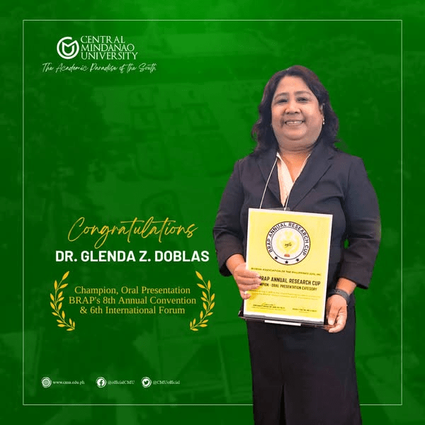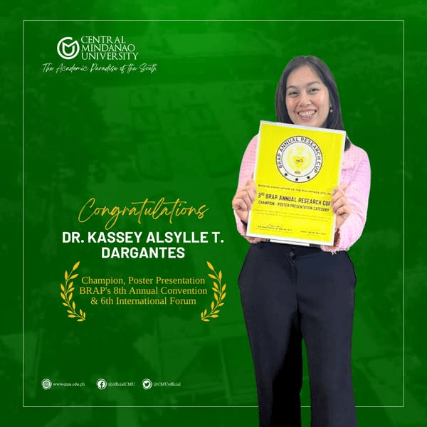 [#CMUpride] Central Mindanao University extends its warmest congratulations to Dr. Glenda Z. Doblas and Dr. Kassey Alsylle T. Dargantes for their remarkable achievement at the 3rd Annual Research Cup, held during the BioRisk Association of the Philippines’ 8th Annual Convention and 6th International Forum at the Crowne Plaza Manila Galleria on July 2-4, 2025.