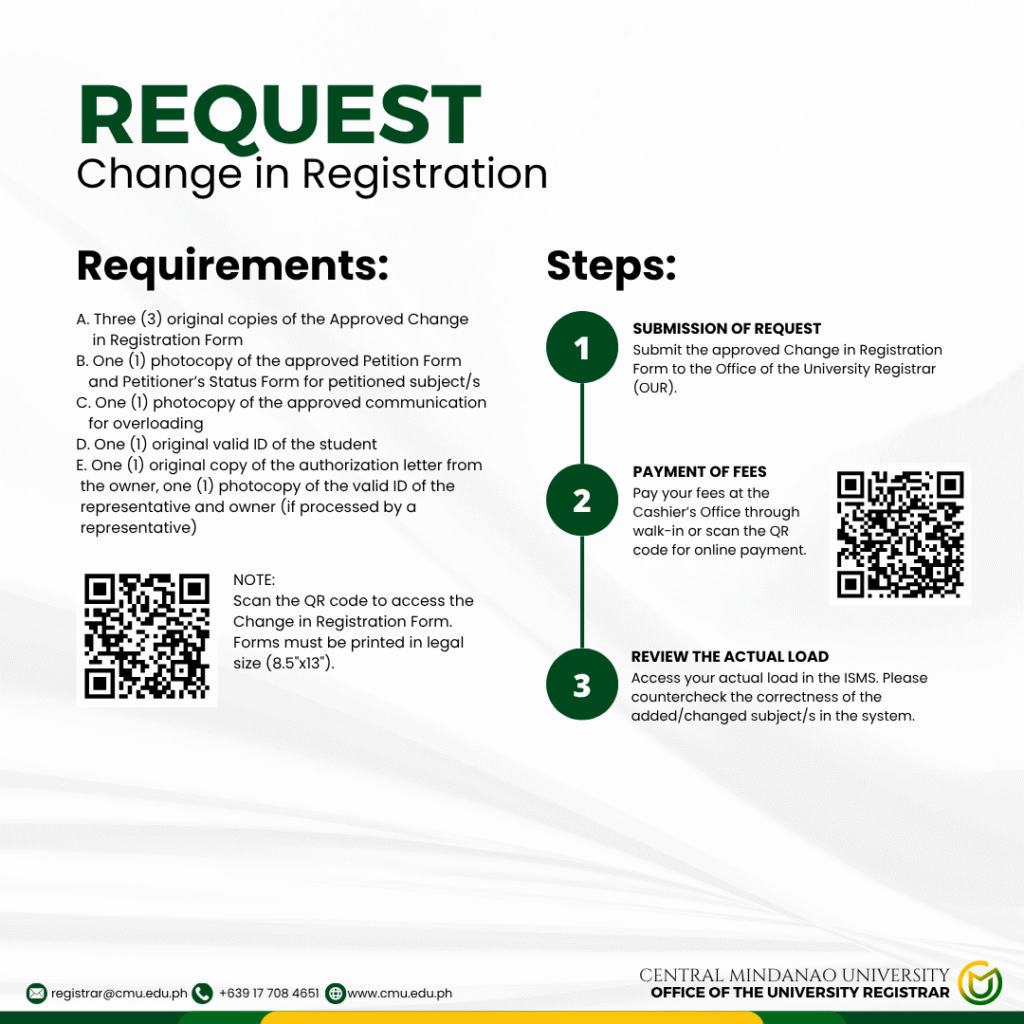 To all students who will add and/or substitute subjects for the Second Semester, AY 2025–2026, the CHANGE IN REGISTRATION period will be January 12-16, 2026