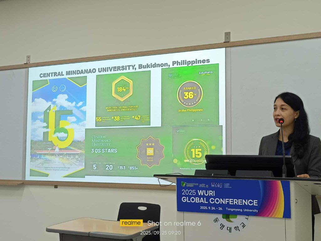 Central Mindanao University (CMU) proudly secured its place in the 2025 World University Rankings for Innovation (WURI), reaffirming its commitment to global recognition, innovation, and international collaboration. The recognition was formally conferred during the WURI Global Conference 2025 held on September 24–26, 2025, at Tongmyong University in Busan, South Korea.