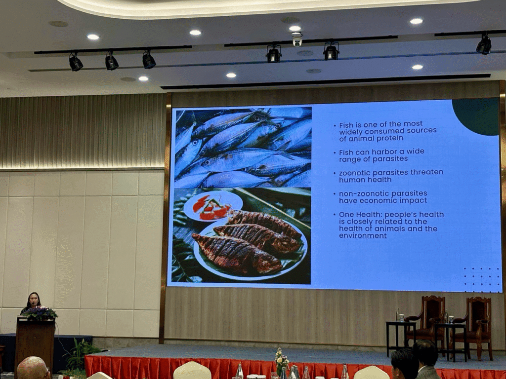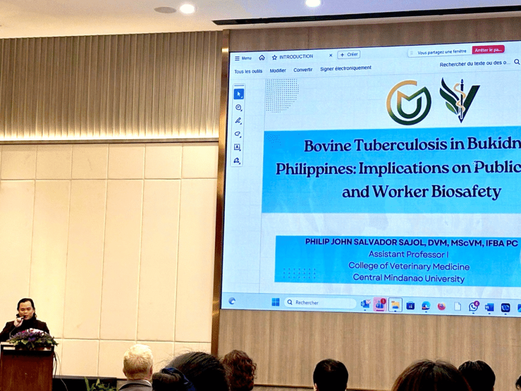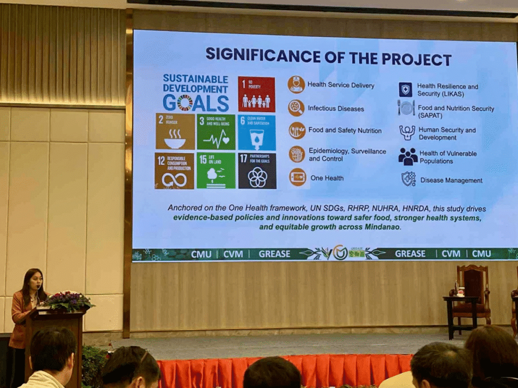 This was followed by the 13th GREASE Annual Scientific Meeting on October 27–28, where CMU-CVM faculty showcased their ongoing research contributions to the One Health approach. Dr. Philip John S. Sajol presented his study on bovine tuberculosis in Bukidnon, emphasizing its public health implications and biosafety concerns among slaughterhouse workers. Dr. Karla Cristine C. Doysabas discussed their research on zoonotic parasites in wild-caught and market fish, highlighting associated One Health risks. Dr. Kassey Alsylle T. Dargantes shared their study on food safety in Mindanao, focusing on Salmonella contamination, antimicrobial resistance, and stakeholder practices related to eggs and spent hens.