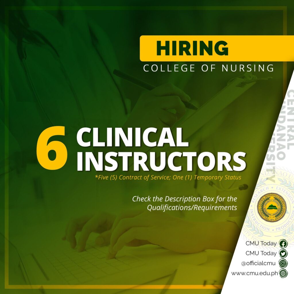 HIRING: The College of Nursing is in need of Six (6) additional Clinical Instructors for the SY 2020-2021